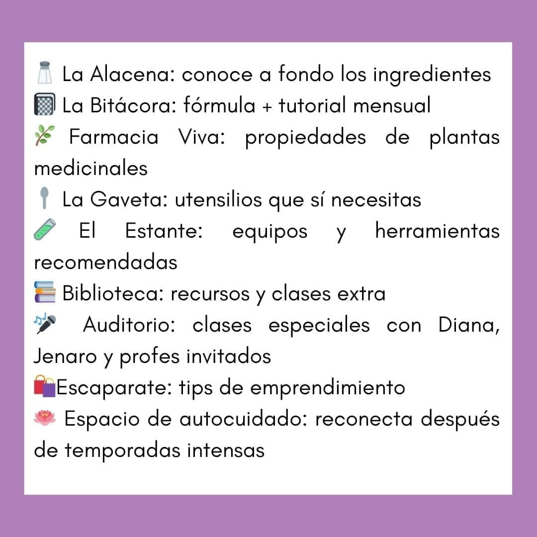 Una membresía botánica y científica para aprender cosmética natural a tu ritmo, sin saturarte y en comunidad.
